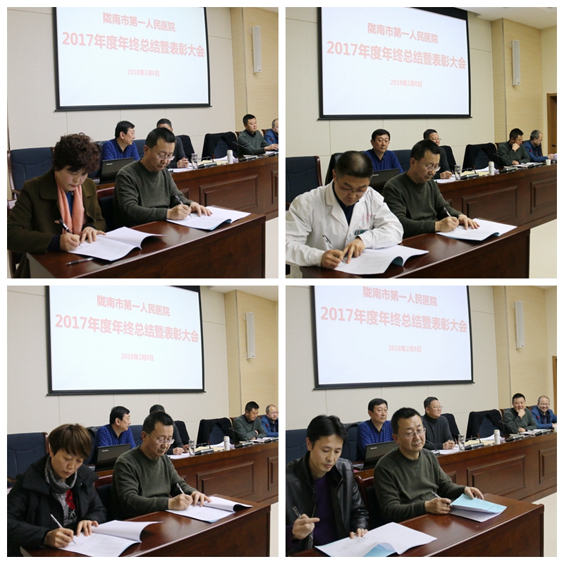 会上,副院长李进元宣读了医院对2017年度先进工作者、先进科室以及各项工作中涌现出来的先进个人和先进集体的表彰决定;副院长杜敏宣读了《陇南市第一人民医院安全生产“百日宣教”活动方案》,安排部署了春节期间的安全生产、放假等工作。