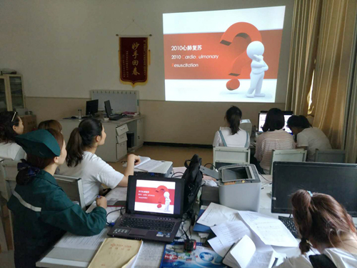 培训过程中护士长周婕运用PPT课件,重点针对心肺复苏的意义、“2010心肺复苏”指南(CPR)解读等内容进行了详细的领学,分析了新旧指南变动的依据和实际效果,提出了专业人员与非专业人员在抢救时不同的要点;并对如何判断病人心跳呼吸停止、心肺复苏的指征、操作步骤及技巧、救助过程中的注意事项、复苏成功的指征等进行了详细的阐述,并着重强调了新的CPR的进展和操作顺序。