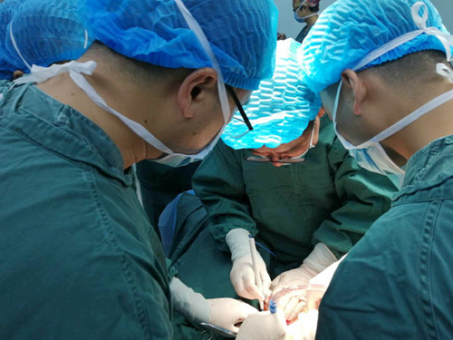 活动中,黄教授与我院乳腺科主任刘昌平在麻醉科副主任张建荣及医护人员的协助下为一位七十岁女性乳腺癌患者实施乳腺癌改良根治术,手术中彻底清除转移淋巴结,术程顺利,术后患者无并发症发生,恢复良好。