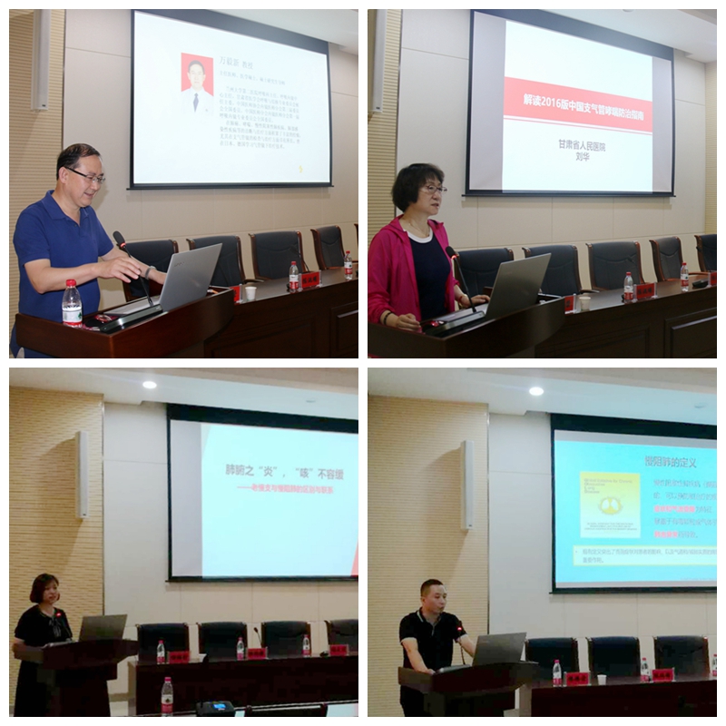 培训班上,兰州大学第二医院呼吸内科主任万毅新、副主任王虹,甘肃省人民医院呼吸内科主任刘华以及我院呼吸内科主任杨福荣分别以《(雾化吸入疗法在呼吸疾病中的专家共识)在慢阻肺与哮喘患者的临床应用指导》、《解读2016版支气管哮喘防治指南》、《老慢支与慢阻肺的区别与联系》、《慢性阻塞性肺疾病诊断、治疗与预防全球策略(2018版)更新解读》为课题进行了精彩的学术讲座。讲座期间专家向参会同仁们分享了慢性阻塞性肺疾病、支气管哮喘及雾化吸入治疗的新理念、新技术和新经验,并和参会的呼吸界同仁进行了问答互动,现场学术氛围异常活跃。