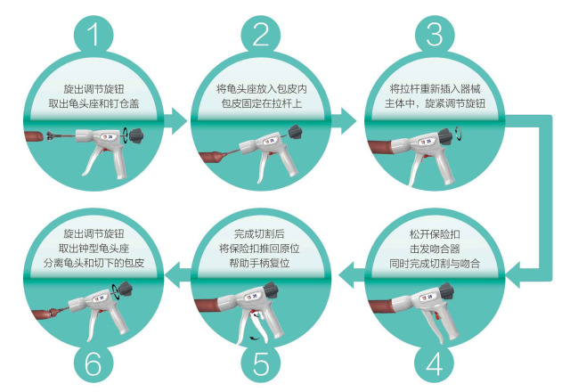 击发缝合器手柄后切割刀片一刀切下多余的包皮,不会出现传统手术时的锯齿样伤口,更为美观。