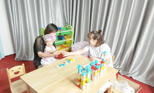训练过程中,康复医疗中心工作人员认真、耐心、细致地与患儿沟通交流,使患儿对声音产生需求;通过与患儿一起玩游戏,增进患儿与我们工作人员的亲近感,促进患儿康复。