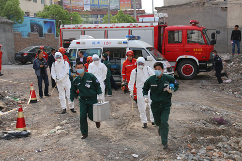 4月14日上午,我市举行地震应急救援现场救援演练,我院应急救援队共8人参加了此次演练。此次演练展示了近年来我市防震减灾工作取得的进展,模拟了地震发生后,震情处置、震情会商、信息报送、队伍集结、等科目的演练。通过演练,进一步检验预案,提高应急预案针对性、实用性和可操作性。