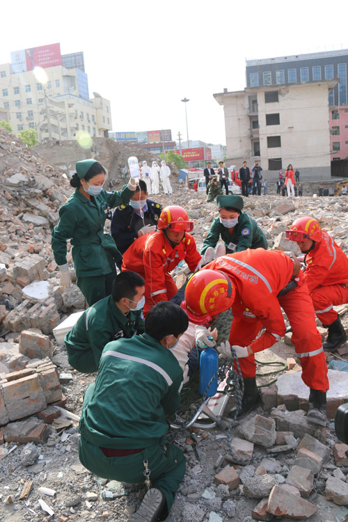 我院医疗救援队参加全市地震应急救援现场救援演练