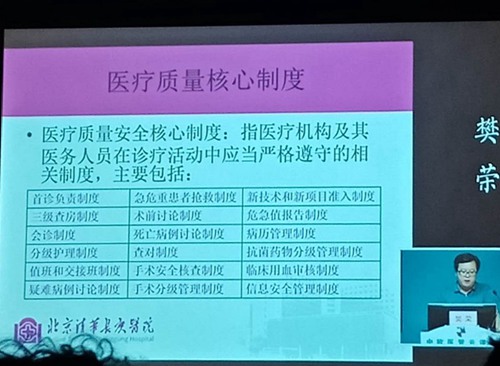 杜敏副院长主持讲座时强调:全院医务人员都要牢固树立为患者服务的意识,严格落实十八项医疗核心制度,做到依法依规执业,全面提升医疗服务质量,消除安全隐患,降低医疗风险。