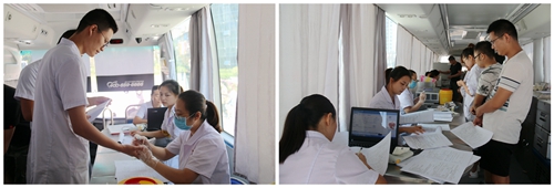 上午9时,参与无偿献血的职工已经聚集在献血车门前,各支部各科室响应号召,积极参与其中。科室主任、护士长带头现场献血,他们用实际行动为全体职工作表率,拉开了此次无偿献血活动序幕。