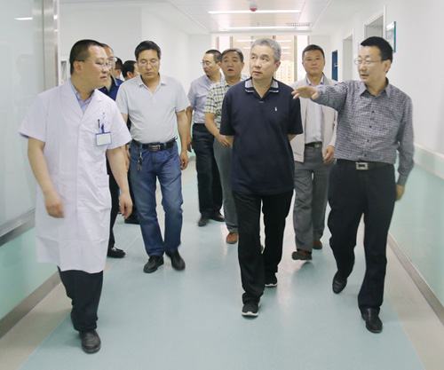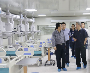座谈会结束后,王东书记一行人参观了我院东江新院区的标准化病房,对已经投入使用的内分泌科、泌尿外科等临床科室进行了现场指导交流,同时参观了ICU室、供应室、手术室以及CT/MRI室的医疗设备配置情况。