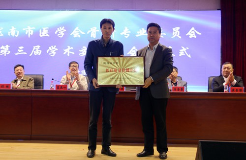 随后,冯雁翔科长宣读了陇南市骨科质量控制中心成立文件;苏继成副主任向我院颁授了“陇南市骨科质量控制中心”牌匾。