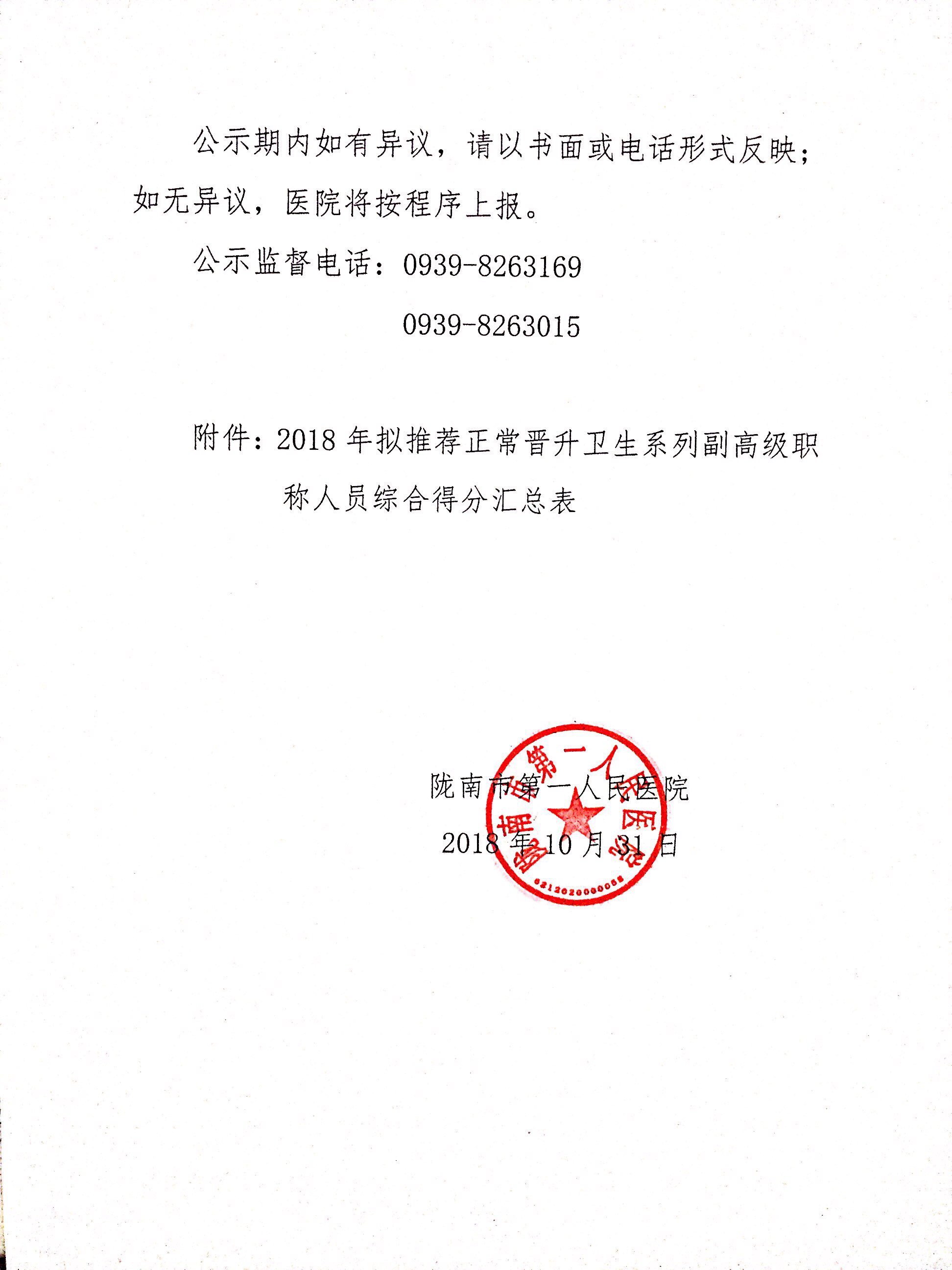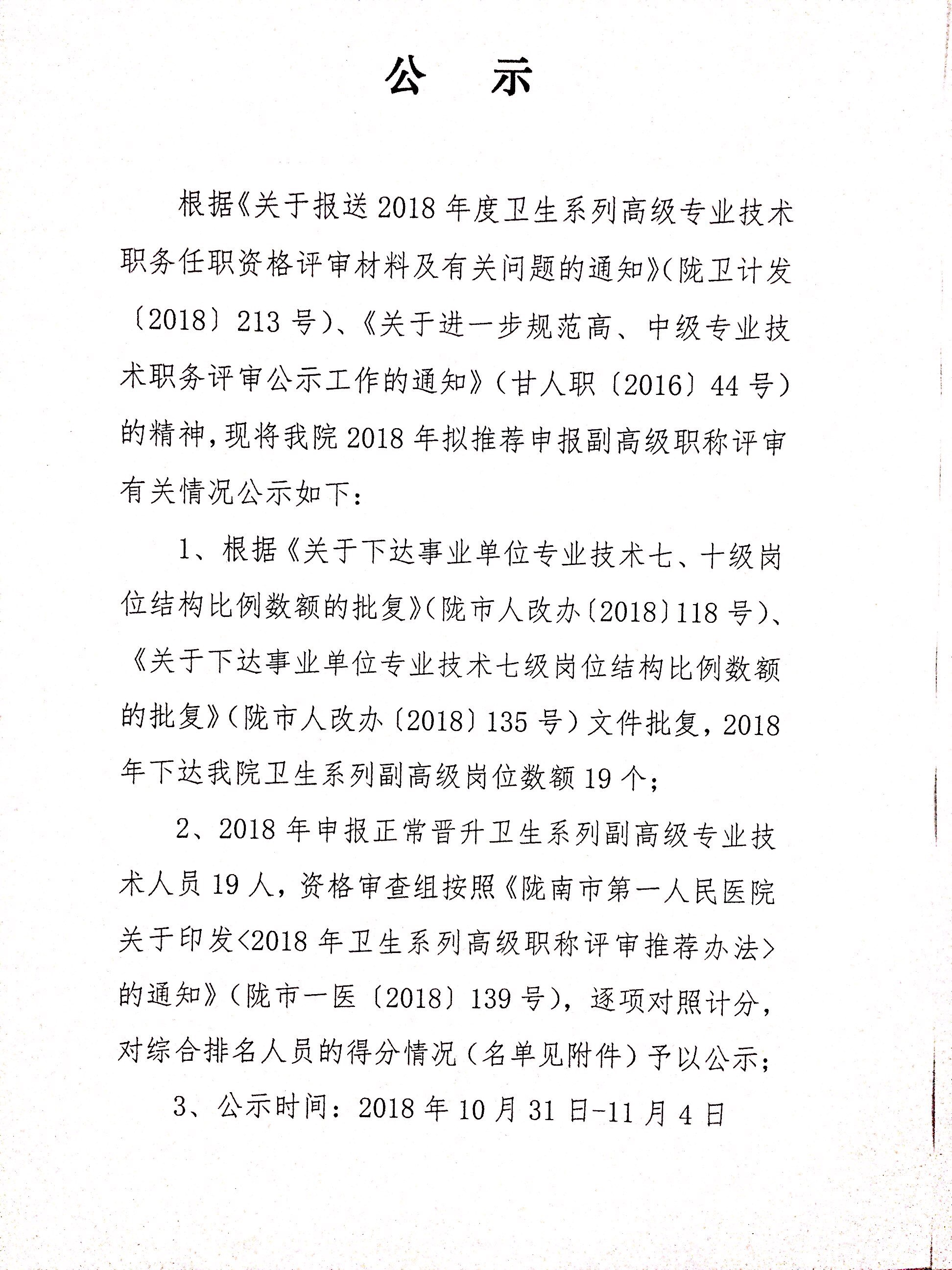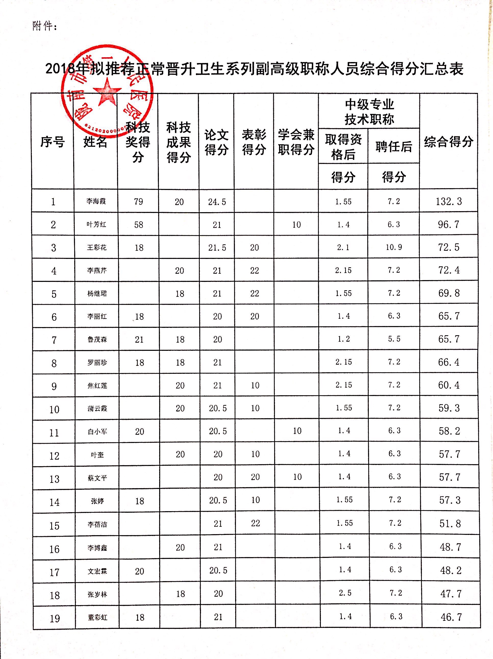 2018年拟推荐正常晋升卫生系列副高级专业技术职称人员的公示