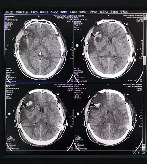 11月2日,由我院副院长杜敏带队一行6人赴文县第一人民医院开展健康义诊工作,尹卫宁教授应邀参与此次活动。活动期间,尹教授开展了一例左侧硬膜外血肿清除术、右侧去骨瓣减压脑内血肿清除术,手术过程顺利,挽救了患者生命。术后复查CT,患者恢复良好。