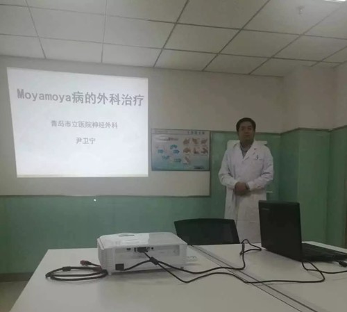10月23日下午3点,尹教授在神经外科二病区示教室为神经外科全体医护人员带来了一场高水平的学术讲座,讲座题为《Moyamoya病的外科治疗》。尹教授深入浅出的讲解,不时赢得阵阵掌声,并与神经外科医师们进行了热烈的讨论,耐心解答了医师们的各种疑问。