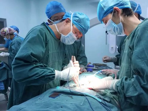 工作中的刘海飞教授敬业求精,医术精湛,他的到来加快了我院骨科脊柱专业的发展,同时在骨科软、硬件的建设、人才的培养、业务发展等方面起到了积极的推动作用。