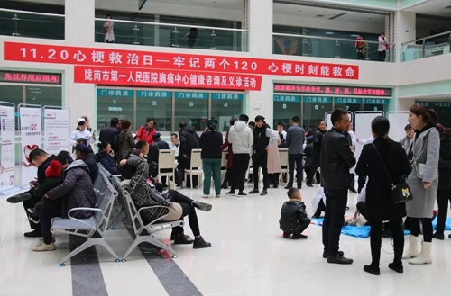 为提高公众对心梗严重性与防治重要性的认知,普及急性心肌梗死的规范化救治流程,2018年11月20日,第五个“中国11.20心梗救治日”,我院心内科、急救中心联合在门诊大厅开展了大型胸痛知识宣教义诊活动,同时进行心肺复苏现场演练培训。