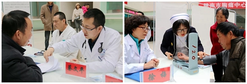 本次义诊活动特邀到对口帮扶我院的青岛市紧急救援中心主任徐梅现场指导,急救中心主任周旻、心内科二病区主任蔡文平及张昊景、王红龙、韩文东、刘三宝,心内科一病区巩玉琴、陈孝芹等骨干医师以医护人员一颗颗赤子之心,给原本寒冷的冬天带来了无限温暖。前来就诊与咨询的患者络绎不绝。