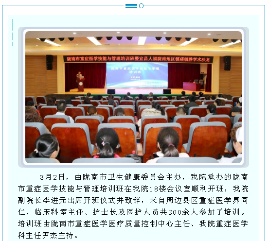陇南市重症医学技能与管理培训班在我院顺利举行