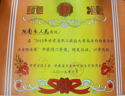 10月15-16日,由省总工会、人社厅、工信委、科技厅、国资委主办,省卫生计生委承办,省人民医院协办的2015年全省临床检验医学专业技能比武大赛省级决赛在兰州举行。