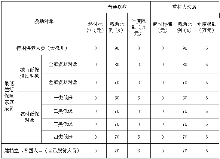 四、医疗救助对象及标准