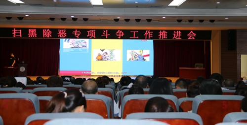 为深入贯彻落实党的十九大精神,依法严厉打击涉黑、涉恶违法犯罪活动,按照市委统一安排部署,6月4日下午,我院在外科楼十八楼会议室召开扫黑除恶专项斗争工作推进会。院长闫晓光、党委书记李高峰、副院长李成学、杜敏以及科室负责人、科主任、护士长、医院职工共500余人参加了会议。专题会由副院长李成学主持。