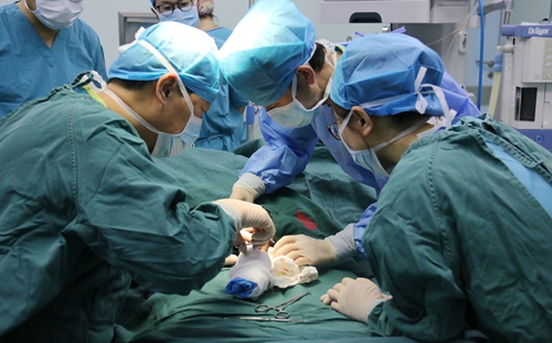 ▲张扬教授、张延平副主任、王小芳主治医师开始手术