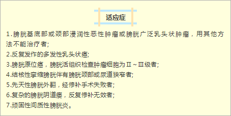 全膀胱切除术在男性是将膀胱、前列腺和精囊一并切除,在女性是将膀胱和尿道一并切除。根治性全膀胱切除术是整块切除膀胱、前列腺、精囊、盆腔腹膜、盆腔侧壁和血管的周围组织(包括淋巴结和淋巴管);在女性则另外包括阔韧带、子宫、子宫颈和部分阴道。