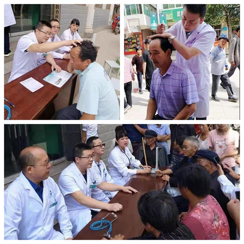 义诊现场,我院神经外科一病区副主任周小荔、主治医师苟理宏,康复科主任郭乾乾、副主任豆彦平、康复治疗师王正军等医护人员,为前来就诊的患者提供诊疗和健康咨询服务。上午十时,前来问诊的居民络绎不绝,专家们认真聆听患者病情陈述、询问生活习惯,针对每个患者的不同情况,耐心叮嘱他们日常注意事项,并针对神经系统常见病、多发病及康复治疗提供健康咨询及用药指导。此次义诊免费测血糖50余人次,量血压100余人次,发放健康知识宣传单100余份,赠送20余本“神经系统病损康复手册”。医疗专家团队认真细致的服务赢得了当地群众的一致好评。