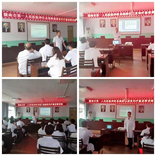 8月23日,我院神经外科一病区联合康复医疗中心共5名医疗专家赴武都区第三人民医院开展免费义诊活动,并为该院医务人员开展神经系统病损康复治疗新进展学术讲座。