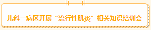 为提高科室人员业务水平,巩固基础知识,近日,儿科一病区主任王晓莉,副主任文宏霖组织全科医护人员就“流行性肌炎”相关知识为题开展专题培训会。