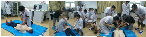 随后,放射科主任唐小平、副主任李博鑫带领医务人员依次进行心脏复苏操作,过程中不断咨询,拉动了全体科室人员的操作积极性,各位医师争先恐后练习操作,现场学习气氛热烈,均较为熟练的掌握了这一技术。