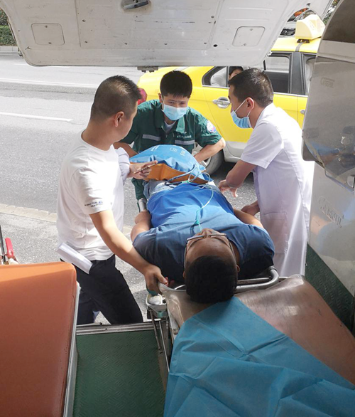 上午9点19分,胸痛中心接到120急救电话:白龙江边北岸,金都大酒店斜对面,一名晨练的30岁青年男性,突发胸痛30分钟,面色苍白伴大汗,无家属,需要急诊救治。2分钟后,120急救车准备就绪,火速赶往胸痛呼救现场。