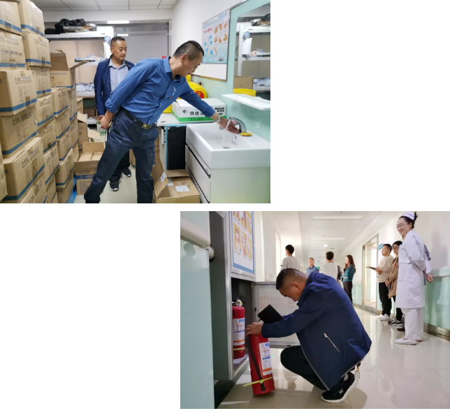 检查组对医院的医疗安全、消防安全、供水、供电、医疗废物处置、安全事故防范、消防通道是否畅通、消防设施是否完好、安全生产是否规范等方面作了详细的检查。