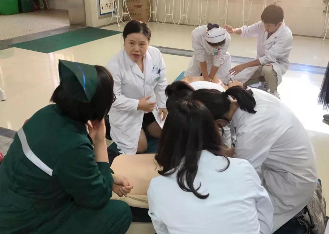 培训中,徐梅科长结合PPT演示文稿,针对孕产妇及新生儿病理生理特点,向医护人员深入浅出的讲解了孕产妇心脏骤停病因、心肺复苏要点、分娩方式的选择、新生儿复苏等内容。讲解结束后,徐科长手把手指导医护人员操作演示,我院急救中心医护人员分组对产科医护人员进行了培训指导。整个培训过程紧张有序,各项操作稳、准、快,受到参培人员的一致好评和称赞。