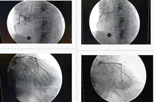 (图分别为一位右冠中段狭窄近95%和另一位前降支近段狭窄80%的患者植入支架后,血管通畅)