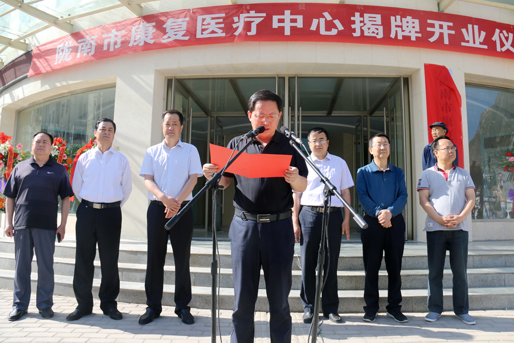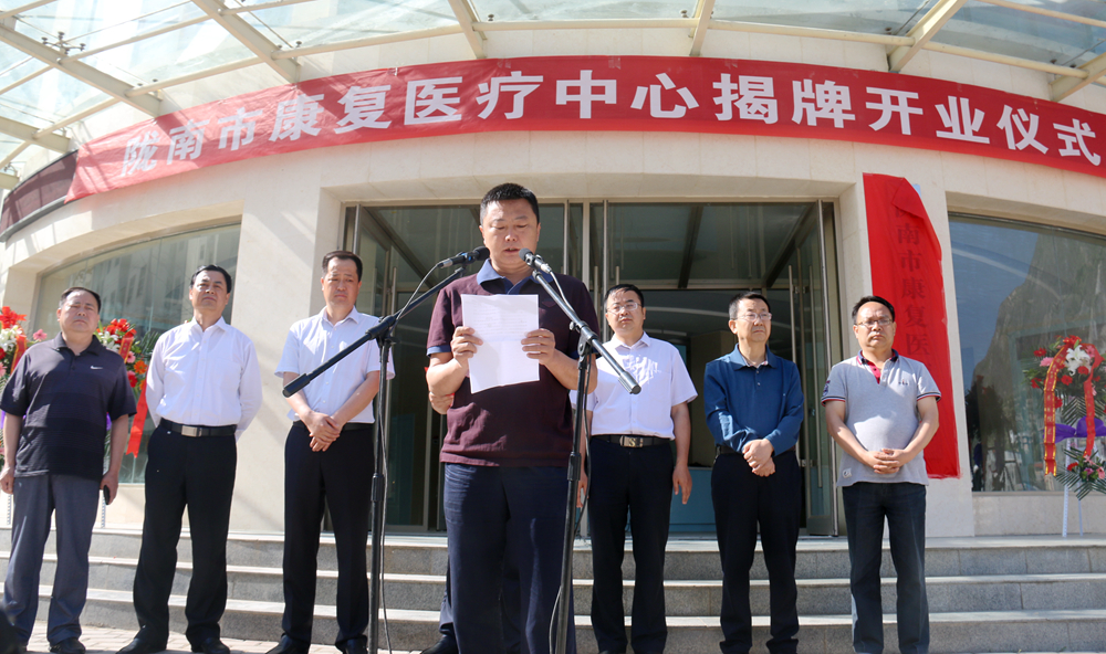 5月26日,由我院托管经营的陇南市康复医疗中心揭牌成立。揭牌仪式由市卫计委主任张庆利主持。市政府残工委副主任、市政府办公室副主任席永成,市残联党组书记、理事长张立平,市残联副理事长赵继荣,我院院长闫晓光,党委副书记兼纪委书记李高峰,副院长李成学、李进元,以及市财政局、市民政局等相关单位负责人参加了揭牌仪式。