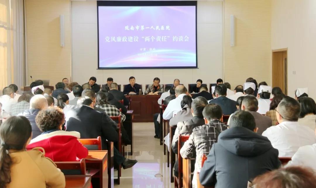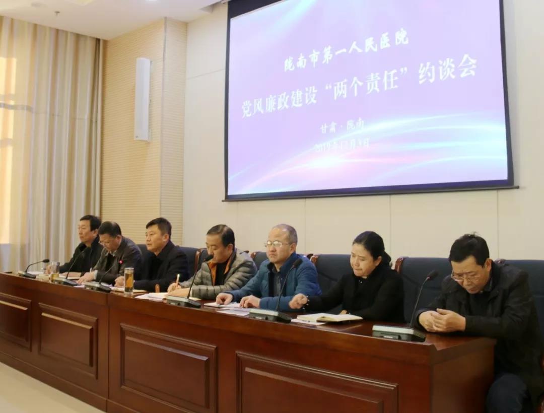李成学同志逐条解读了《陇南市第一人民医院干部纪律规定(试行)》、《甘肃省医疗卫生机构医疗卫生人员行业作风违规问责管理办法(试行)》,并对全院中层干部进行了集体约谈。