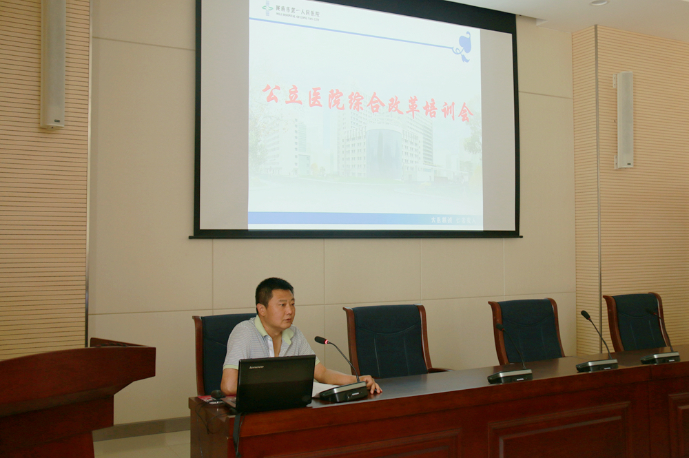 随后,副院长冯旭、陈洮明先后从医院管理体制的建设、医院补偿机制改革、取消药品加成、薪酬制度改革、医保支付方式改革、分级诊疗制度建设、医疗联合体建设、家庭医生签约建设等方面结合省内医院和我院实际对公立医院综合改革进行了解读。