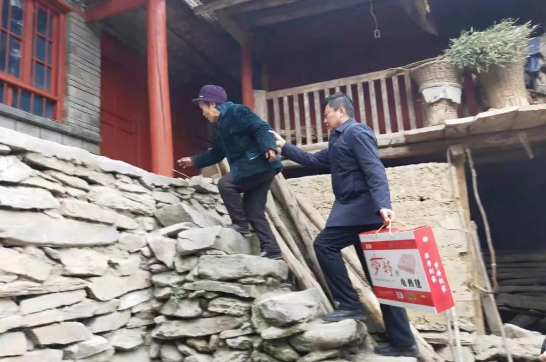 李书记一行探望了村上的10户五保户,认真查看家中饮食、饮水、住房、用电、取暖等基本生活保障情况,详细了解家庭收入、子女就学、看病就医等情况,并给每家每户送去了电热毯,带来了冬日的温暖。