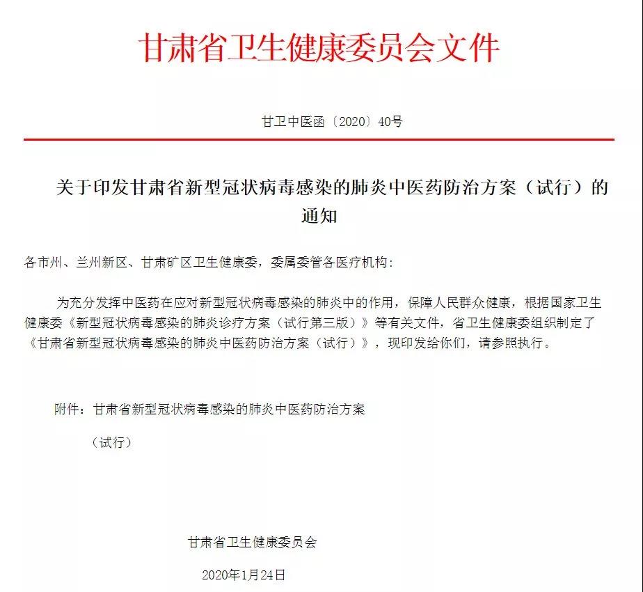 甘肃新型冠状病毒感染的肺炎中医药防治方案(试行),附协和解决方案