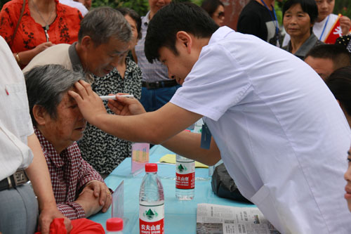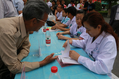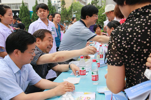 2014年6月6日上午九点整,在副院长张进平的带领下,由眼科两名专家、内分泌科三名专家组成的医疗团队在武都城区街心花园参加了义诊活动。此次活动以“关爱眼健康、预防糖尿病致盲”主题,为陇南市民进行免费量血压、测血糖、近视眼、白内障普查,以及各种眼病的咨询。到活动截止时活动共计为群众测量血压240人次,测血糖155人次,发放包括《糖尿病防治知识手册》、《爱护眼睛 从现在开始》和《关注眼健康预防糖尿病致盲》宣传单等宣传资料1200余份,免费发放左氧氟沙星滴眼液、珍珠明目滴眼液、银杏叶片等价值4000余元的免费药品。