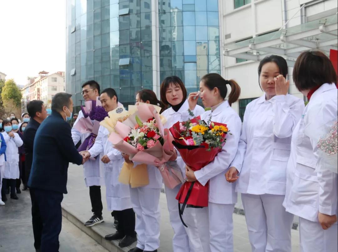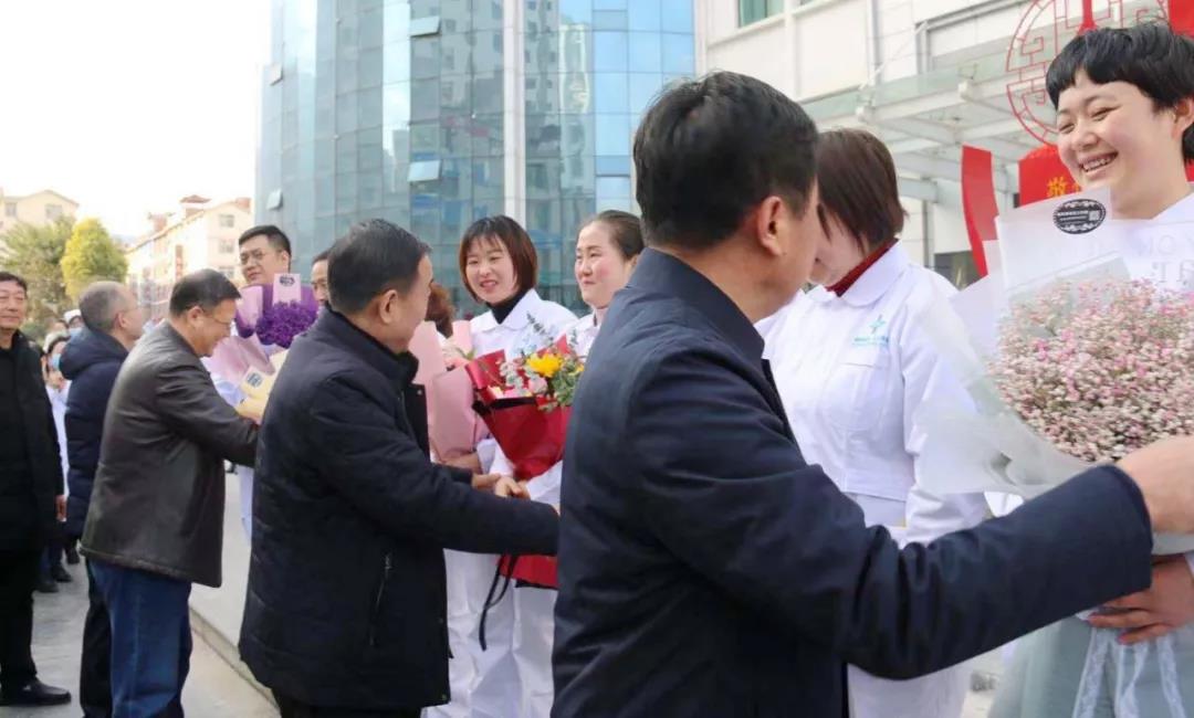 “加油,我们是你的后盾”“一定要平安归来”“好样的,向您致敬”……伴随瑟瑟寒风,一句句由衷的祝福飘荡在陇南市第一人民医院门诊楼的上空。1月27日下午,陇南市第一人民医院赴湖北医疗队出征仪式在这里举行,11名队员列队集结,接受医院领导和同事的祝福、鼓励以及敬意!