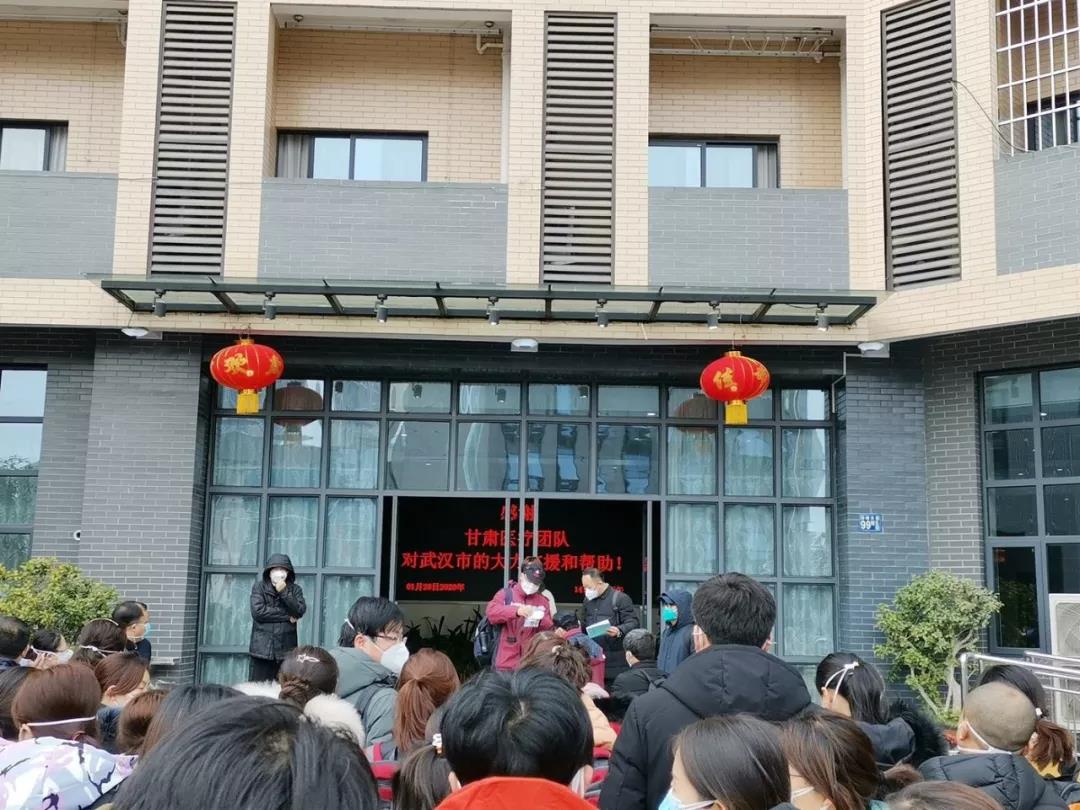 下午1点40分,甘肃省第一批援鄂医疗队抵达武汉天河机场;两点55分抵达武汉全民健身中心,为打赢这场战役养精蓄锐。