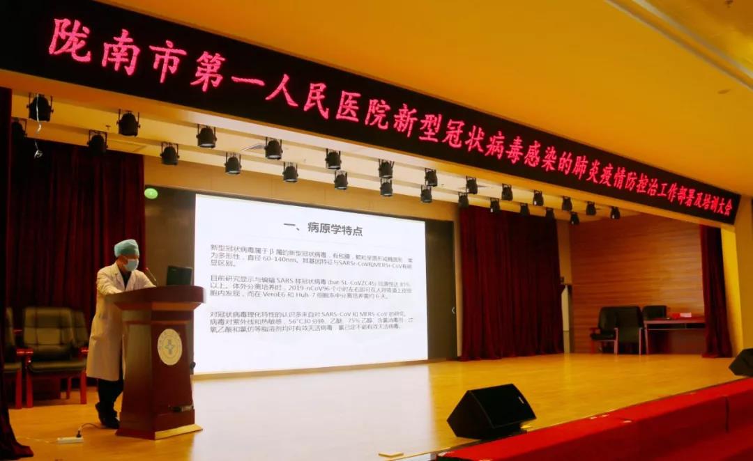 会后,呼吸内科杨福荣以《新型冠状病毒肺炎诊疗方案培训(第四版)》为题、感染管理科张婷以《新型冠状病毒感染的肺炎院感防控》为题,对与会人员进行了培训。