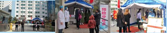 发热门诊及预检分诊处按标准优化整改完成;“高度感染性废物暂存”处搭建完成;保卫科在东、西院区各个出入口安装6顶帐篷,为体温监测提供了方便;