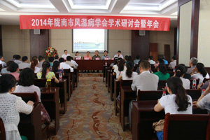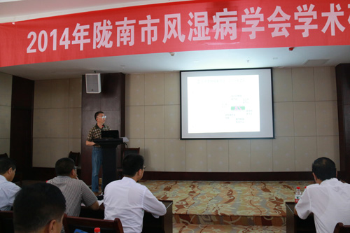 6月21日上午9时,由甘肃省风湿病学会及我市风湿病学会主办,陇南市第一人民医院协办的2014年陇南市风湿病学术研讨会暨年会在武都区莲湖国际大酒店隆重召开。市卫生局副局长魏雄、市医院副院长冯旭、四川大学华西医院风湿免疫科主任刘钢教授、省内著名的风湿病专家王轶教授、甘肃省中医院风湿科王爱华教授应邀出席了会议,来自陇南市内各医院的风湿病专家学者和代表近百人参加了会议。