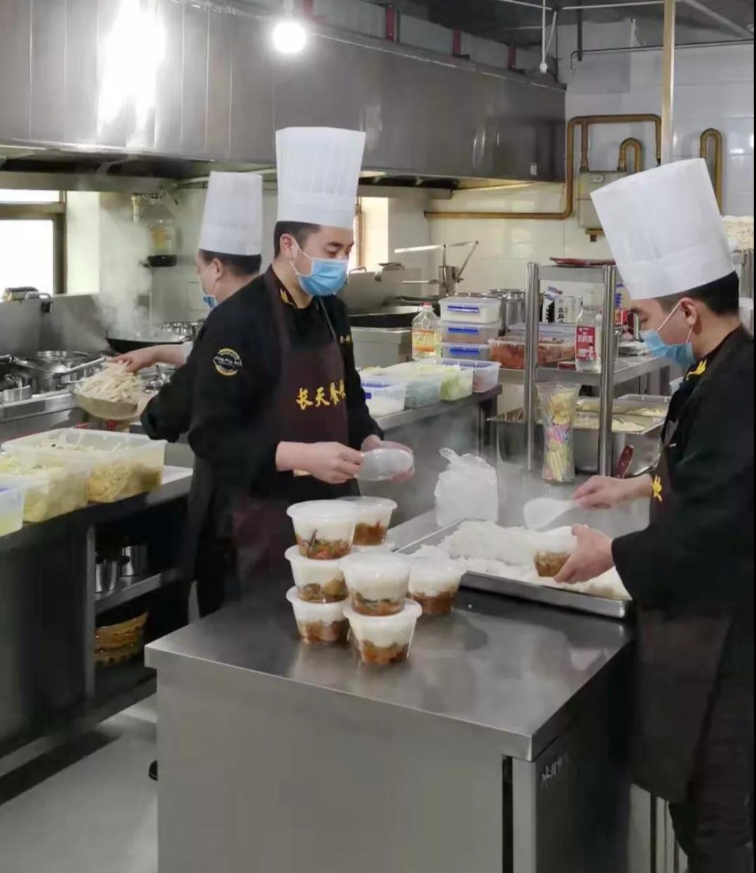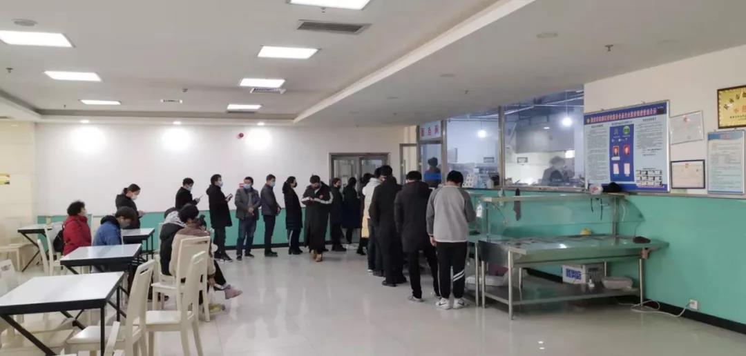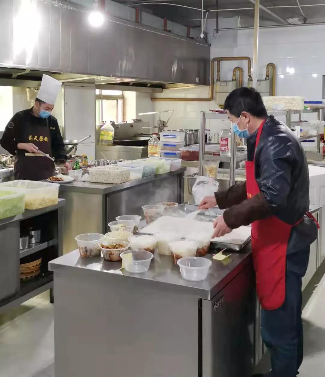 总务科除了承担全院的防疫消毒工作外,还要保障医护人员尤其是发热门诊、急诊及发热病房工作人员及发热患者的餐饮,提供可口优质的餐食及水果。为了餐饮食品安全、供餐安全、人员安全,防止疫情在就餐中扩散,总务科制定了疫期餐饮安全生产操作指南,严格要求医院食堂工作人员全天候佩戴口罩,并对就餐区域进行分区;所有工作人员进入工作场所前必须用医用酒精洗手消毒,方能开始工作,加强就餐场所消毒频次,每餐次开餐前与收餐后用84消毒液或医用酒精进行场地及设施消毒。就餐后产生的餐厨垃圾及时清理,不留在餐厅及厨房,避免细菌滋生。