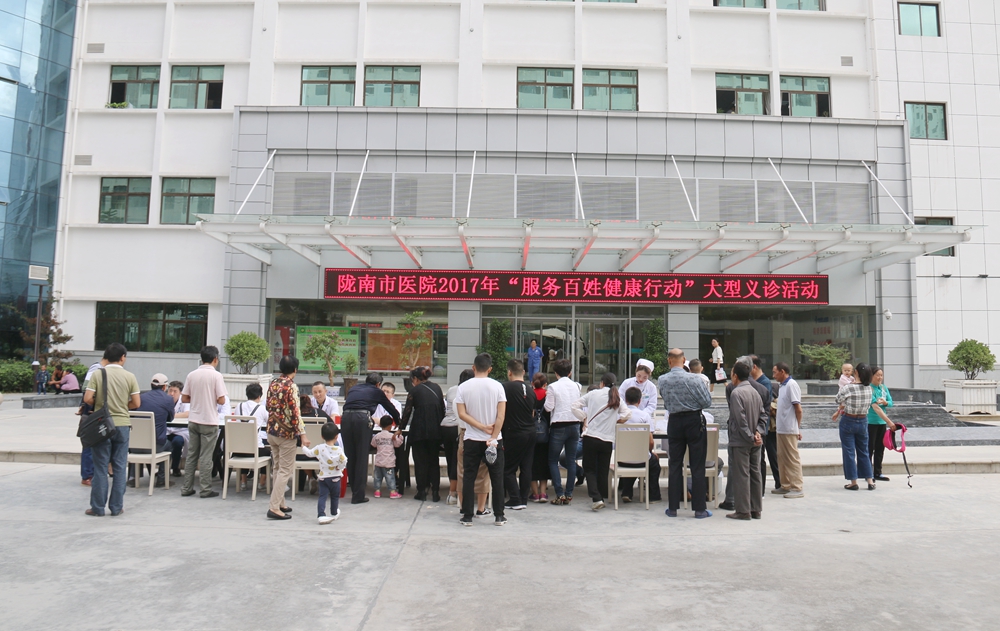 按照国家卫生计生委“服务百姓健康行动”大型义诊活动周总体部署,我院在9月9日拉开了“服务百姓健康行动”大型义诊周活动的序幕,在此次大型义诊周活动期间,我院共派出专家45人次,护士6人次,志愿者10人次,涉及心内科、内分泌科、骨科、消化内科、中医康复科、老年综合科、儿科、普外科等10个专业科室,分别在武都区蓝天广场、白龙江林业管理局中心医院(陇南市第一人民医院两水分院)、对口帮扶村、东江院区等地方进行义诊活动。共接待咨询人员500余人次,免费发放6000元的常用药品、测血糖220人次、做心电图52余人次、测量血压460人次,发放健康宣教材料3000余份、神经外科一病区编印的《实用神经系统病损康复治疗手册》300余本。
