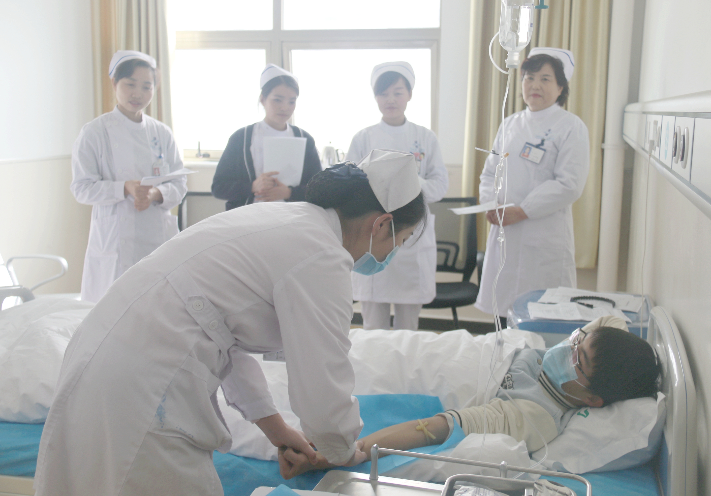 此次活动一季度为一个周期,每周期分三大考核阶段、若干小段,第一阶段为理论知识考核阶段,第二阶段为静脉输液留置针的使用和技术操作,第三阶段为临床技能实践操作阶段。在科室完成第一、二阶段后,第三阶段,特邀请了护理部主任郝金霞、外科护士长郭彩霞、心内科护士长李燕芹作为评委,面对面对护理操作人员进行点评和指导。