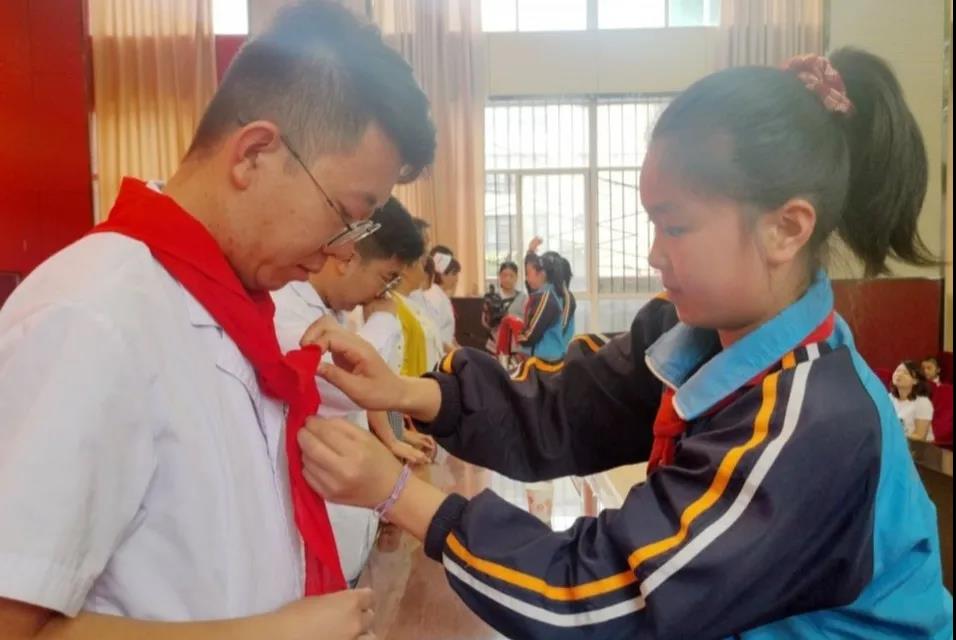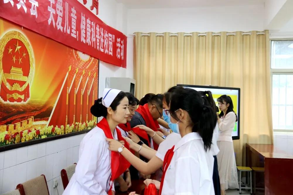 活动伊始,学校少先队员代表为我院医护人员佩戴了红领巾。