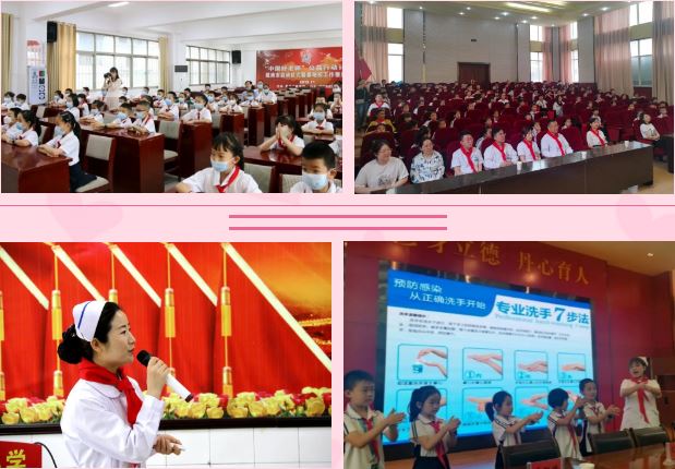 随后,由护士长雷云、刘昭芳为在场同学们带去了一堂精彩而生动的新冠肺炎防控知识科普讲座,也拉开了“关爱儿童,健康科普进校园”活动的序幕。首先护士长们对手卫生(七步洗手法)相关知识及操作要求进行了详细讲解,又为同学们现场演示了如何正确佩戴口罩及废弃口罩如何处理的基本步骤。为了达到更好的科普效果,护士长们亲身示范,通过动作分解与动画视频相结合的方式现场详细指导、答疑解惑,同学们亲自操作,保证参与讲座的每一位同学都能够熟练掌握并在生活中正确运用。精彩的讲座、手把手的教学赢得在场师生的阵阵掌声。