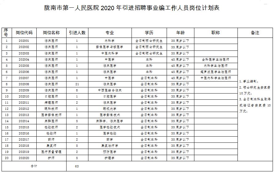 附表:陇南市第一人民医院2020年引进招聘事业编工作人员岗位计划表