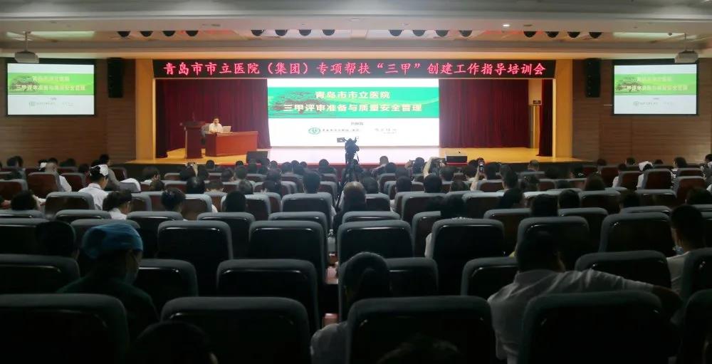 21日下午,青岛市市立医院专项帮扶“三甲”创建工作指导培训会在外科楼十八楼会议室如火如荼的进行着。青岛市市立医院副院长刘振胜及专家组成员,我院领导班子、中层以上干部、创建办人员、三甲创建联络员共200余人参加了会议。会议由我院副院长杜敏主持。